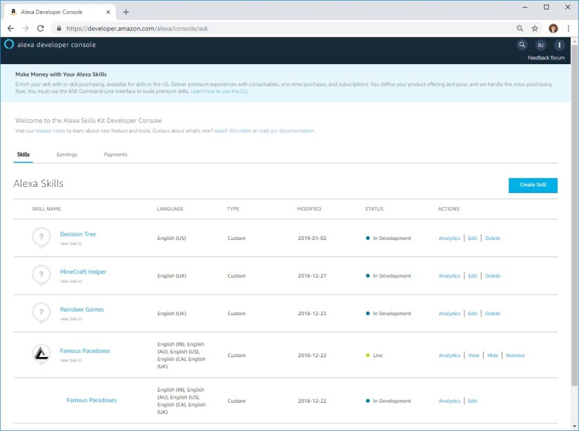 Happy New Year to all my readers! I hope you missed these blog posts at least a little bit. I had a good rest during the festive period and feel ready to start writing and hacking again. In this article, I want to tell you about my most recent fascination- programming for Alexa (Echo) enabled devices.