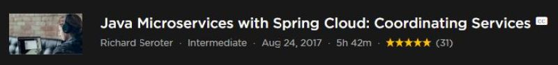Java Microservices with Spring Cloud: Developing Services – an Outstanding course that will teach you everything you need to know to make use of Spring Cloud for developing services. It is the first part of two course series on Spring Cloud. I really enjoyed it.