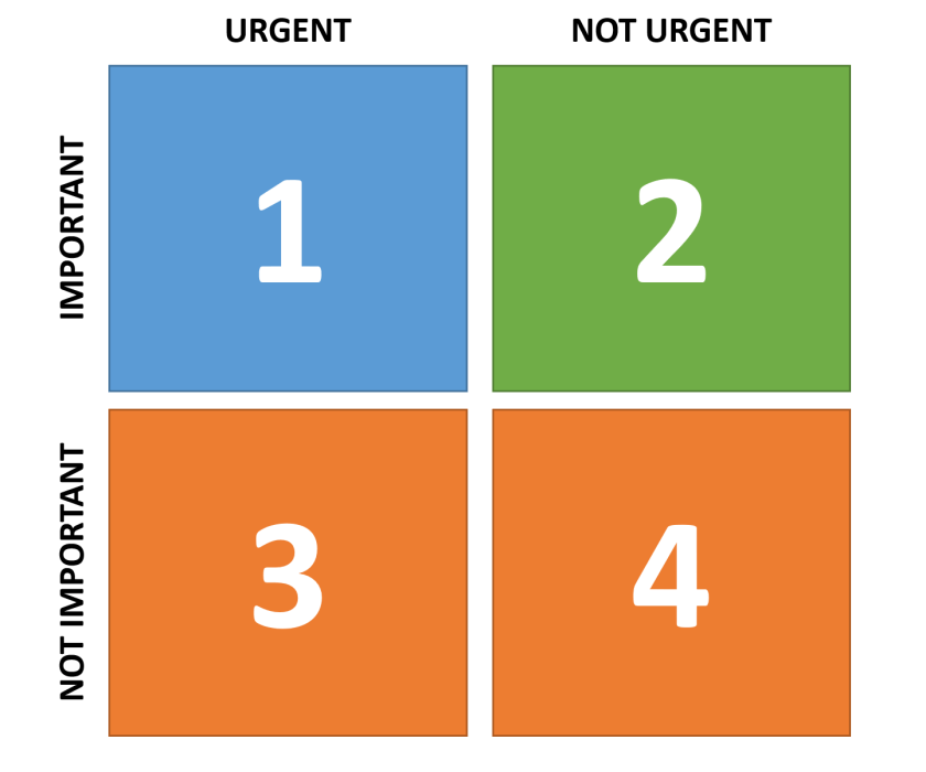 Each task we do will belong to one of these four quadrants.