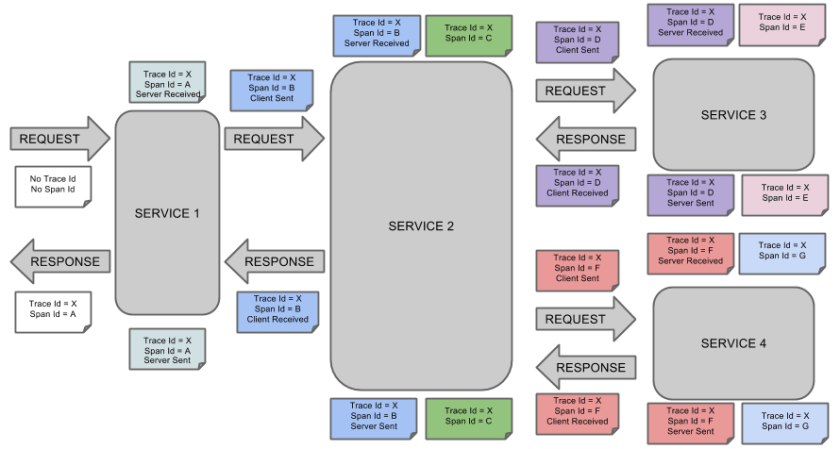 As you can see in that picture above, traceId always stay the same for the whole time, while spanId creates the sort of black-box. It runs from request to response.